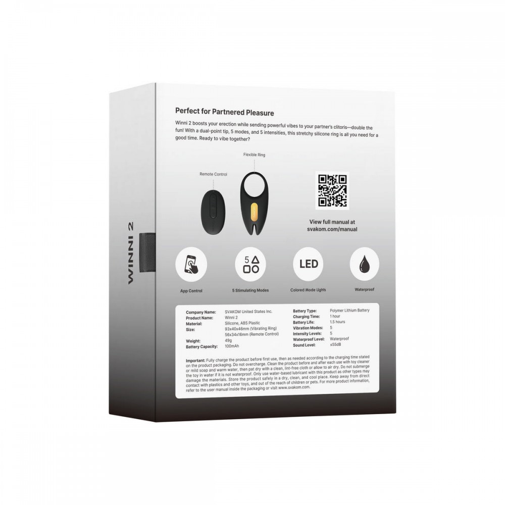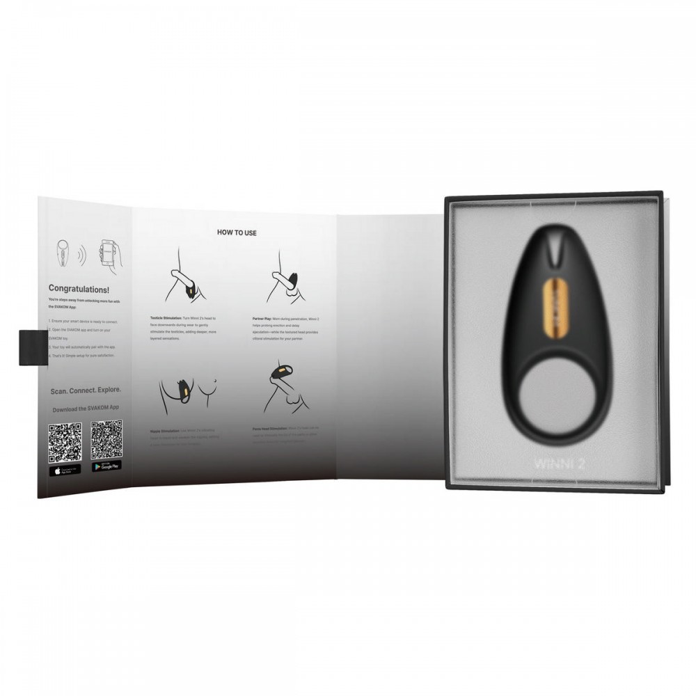 Хотите добавить разнообразие и новые ощущения в свою интимную жизнь? Тогда Winni 2 - это именно то, что вам нужно! Эрекционное кольцо с вибрацией, пультом ДУ и приложением Swakom APP обеспечивает непревзойденное удовольствие как для вас, так и для вашего партнера.