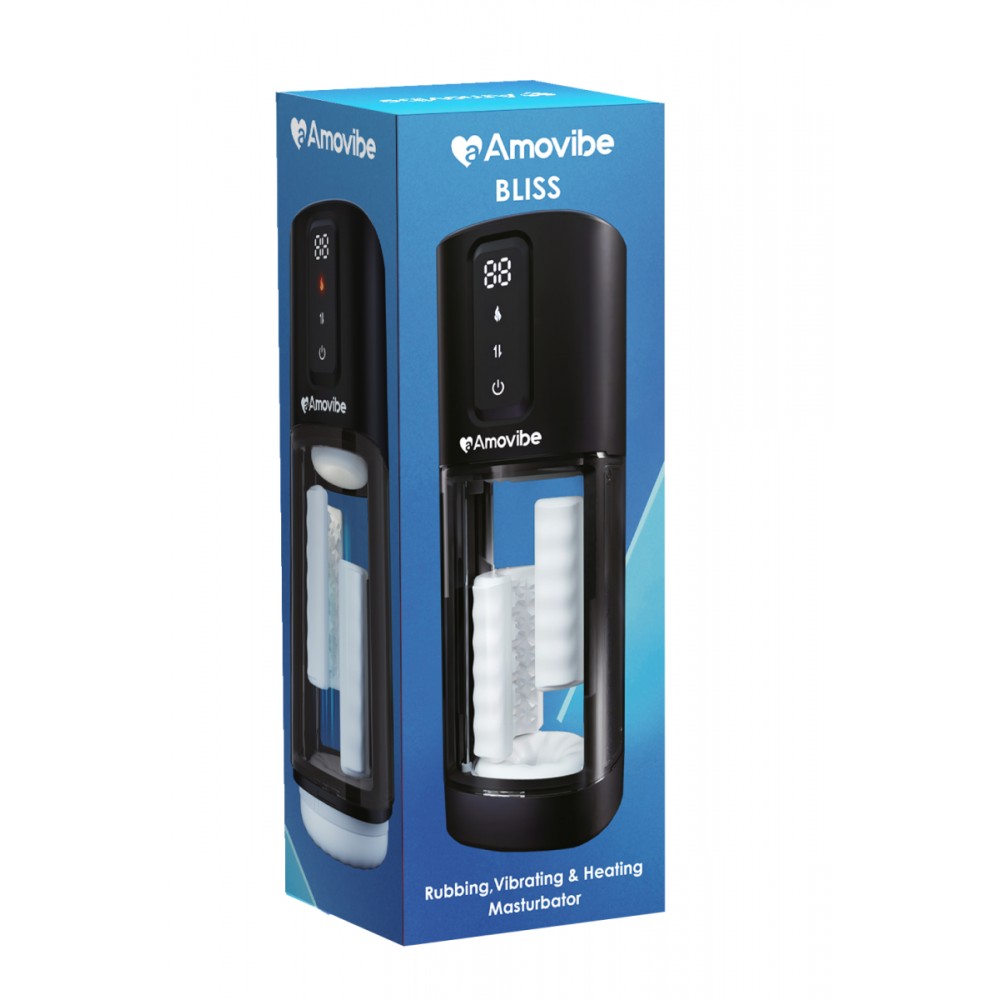 AmovibeBLISS- мастурбатор нового поколения с новейшей стимулицие трением. Мастурбатор имеет две невероятные пластины из мягкого 3D ТПЕ материала создают эффект приятного трения в 6 разных режимов. Каждая пластина дополнительно оснащена вибрационным мотором, который подарит 9 режимов глубокой и практически бесшумной вибрации. Кроме того, игрушка имеет нагрев до 42 градусов. Игрушка имеет ограничение по диаметру (до 4,3-4,5 см)